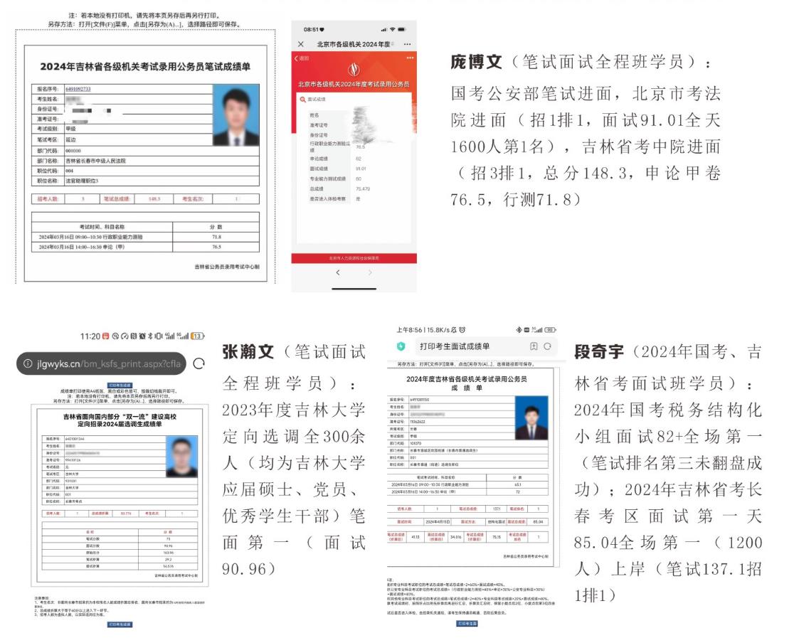 吉林華仕公考前身為“擺渡公考東北分校”,建校多年來,始終秉承“自強不息、厚德育人’的教育理念,成功培養6000余人公職考試成功上岸,成為公職教育領軍品牌。行測、申論、公基、綜應由多位在國考、省考、事業編、招警考試中取得佳績的上岸老師和有著多年閱卷經歷的資深閱卷老師組成;專業課(公安專業)以中國人民公安大學為依托,由多名命題組教授組成;面試由在國考、省考、事業編等各類面試中的佼佼者及多位面試考官組成。